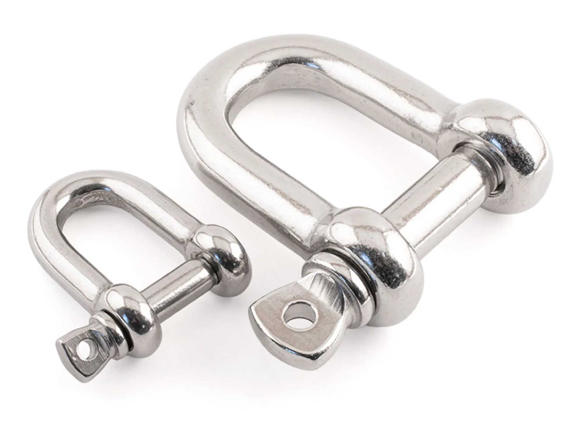 D shaped shackles with a removable collared pin, often used in lifting and rigging systems. Made from 316 / A4 Stainless Steel.