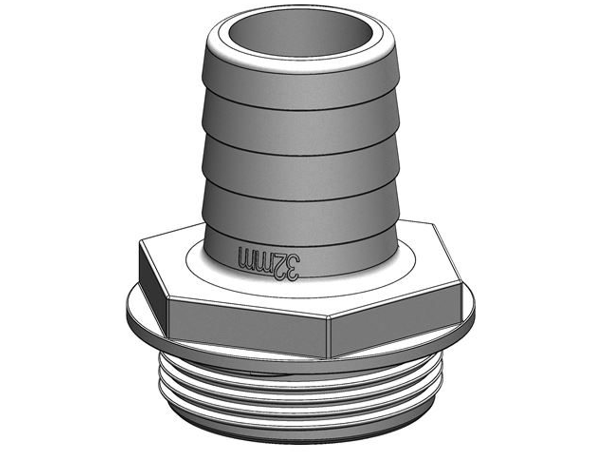 TruDesign Aquavalve Hose Tail 38mm 1½” BSP, manufactured from a glass reinforced nylon composite for high strength and light weight. Fits all Aquavalves.