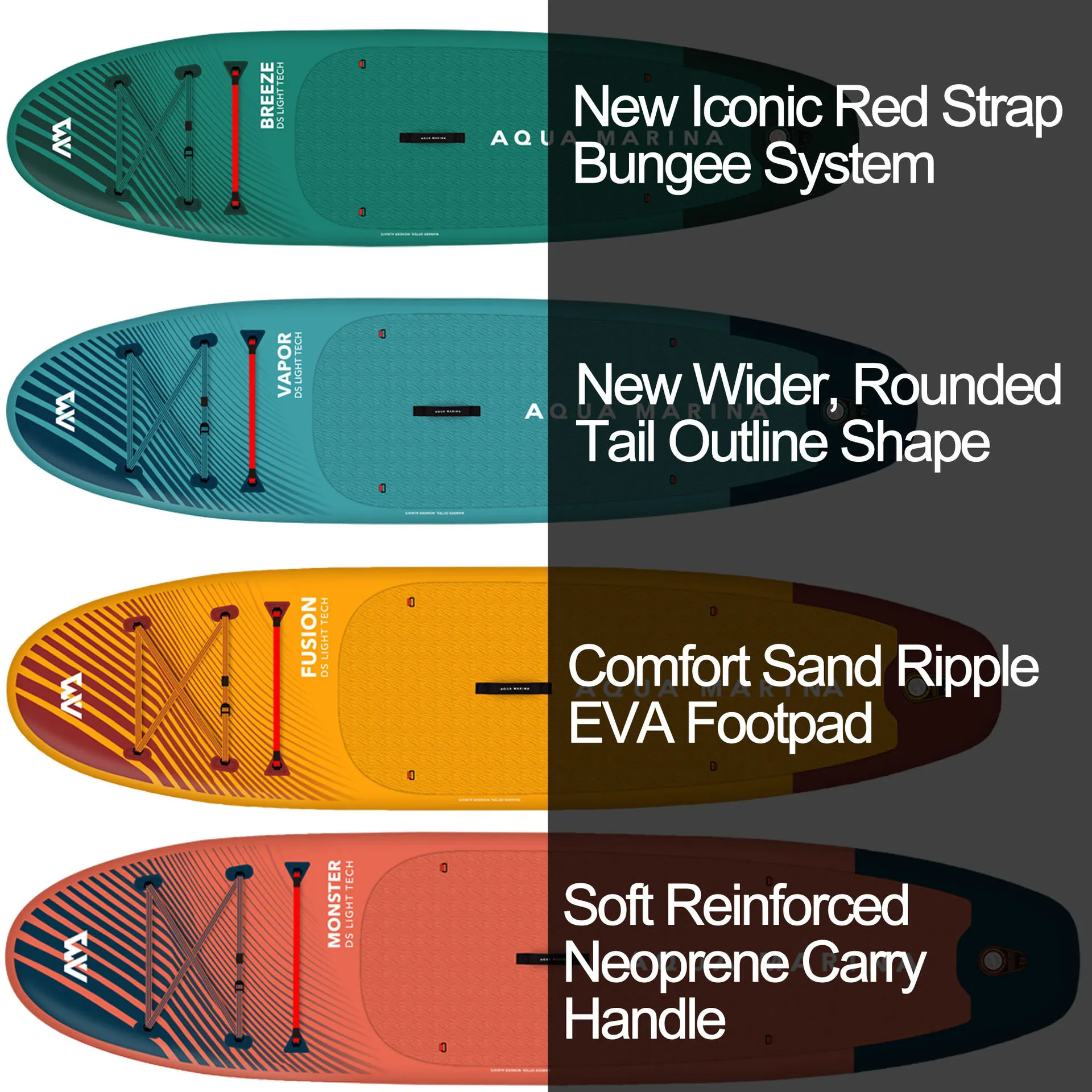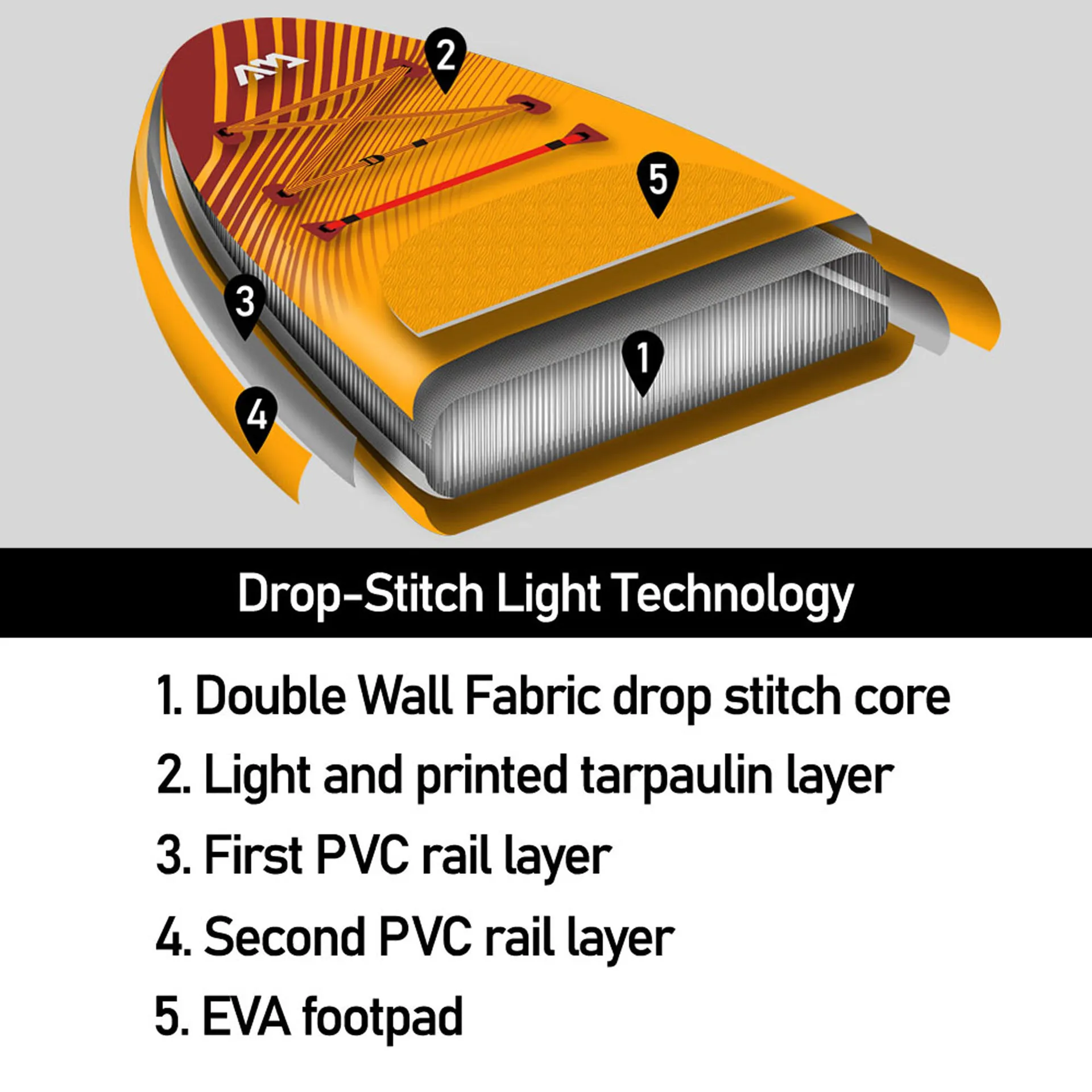 The comfortable diamond grooving footpad provides extra grip, while the strengthened stainless steel leash D-ring ensures a safe ride in small waves. Constructed with Aqua Marina's exclusive Drop Stitch Light Technology, the FUSION is lightweight but super stiff. Coming with a new customized zip backpack, these classic models are highly portable whilst packing everything inside.