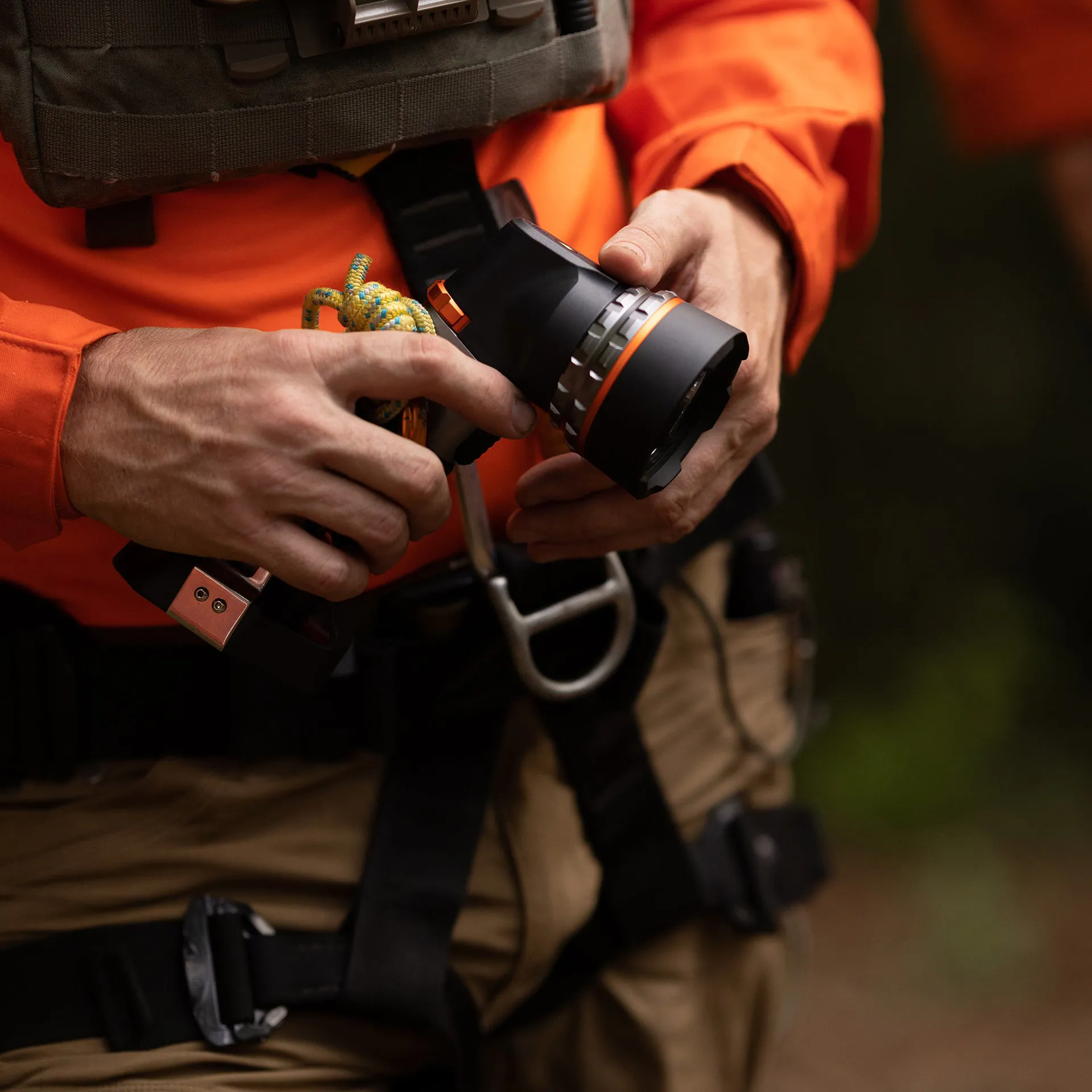 The select dial with trigger allows for easy mode selection with a separate button for activation. Smart Power Control (SPC) allows the product to seamlessly transition through the different light modes. The ergonomic design is comfortable and versatile, featuring an integrated magnetic base, belt clip, tripod mount, and carry lanyard. It features durable PA66, rubber, and aircraft aluminium construction. The rechargeable battery provides long run times.